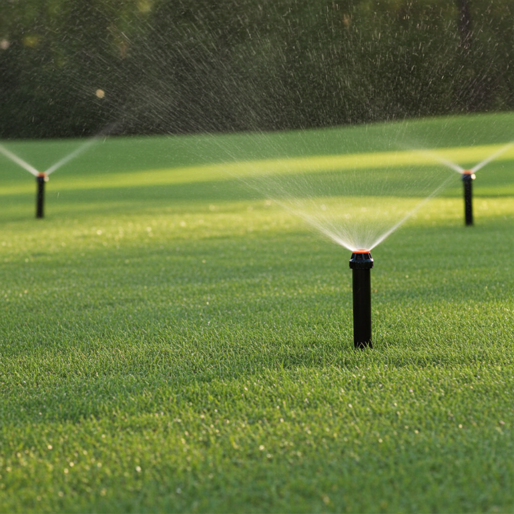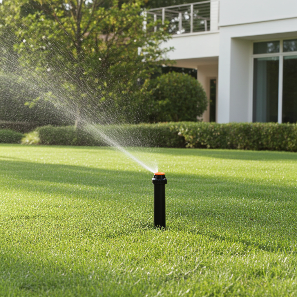 Imagina tu césped con ese verde intenso y uniforme de un campo de golf, sin zonas amarillas ni charcos innecesarios. Al activarse el riego, los aspersores emergen silenciosamente del suelo, creando una fina cortina de agua que imita la lluvia natural