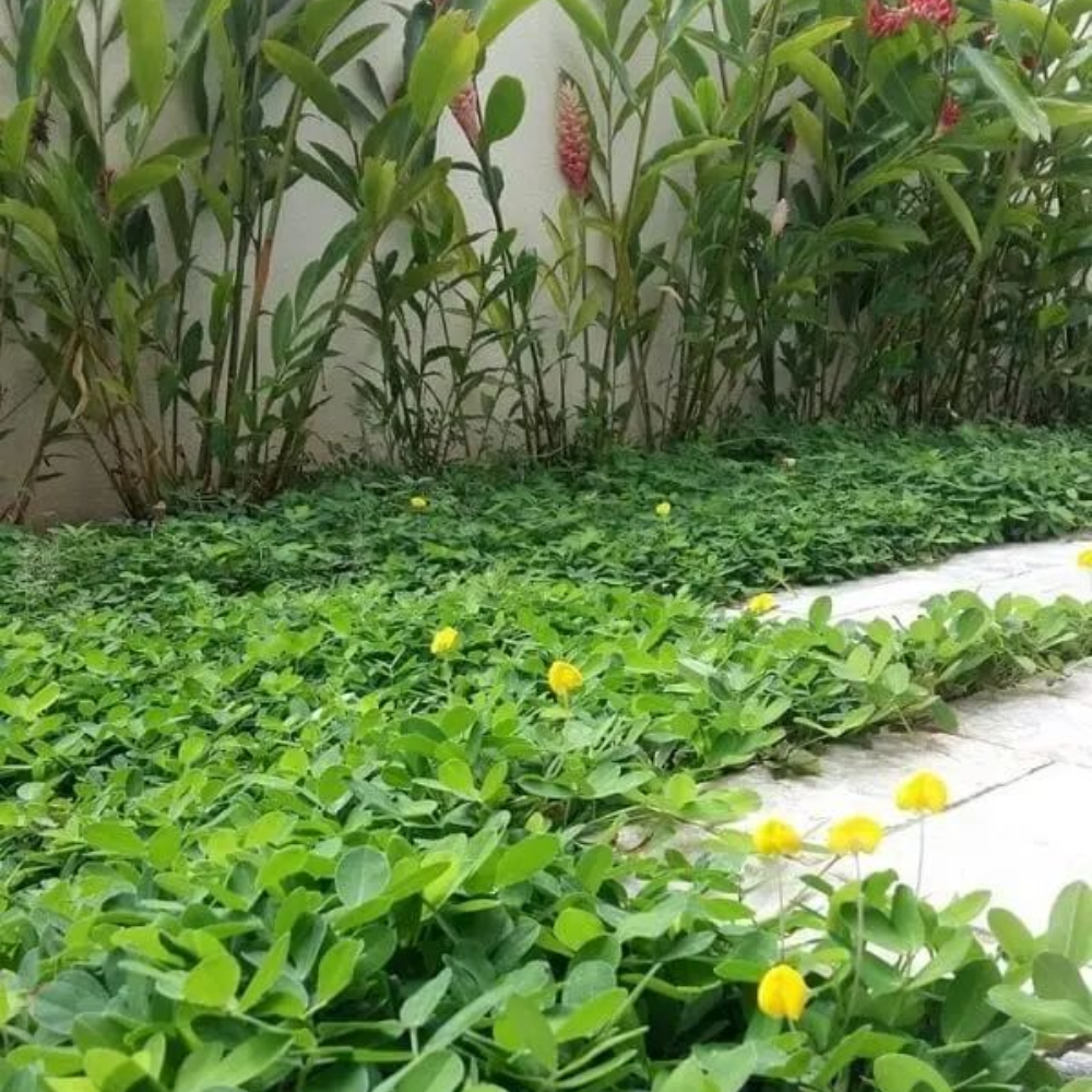 El Césped Maní (Arachis pintoi) es la solución perfecta para quienes buscan un jardín estético, resistente y que requiera mucho menos corte que el césped tradicional. Es famoso por sus pequeñas flores amarillas que le dan un toque vibrante a cualquier espacio.