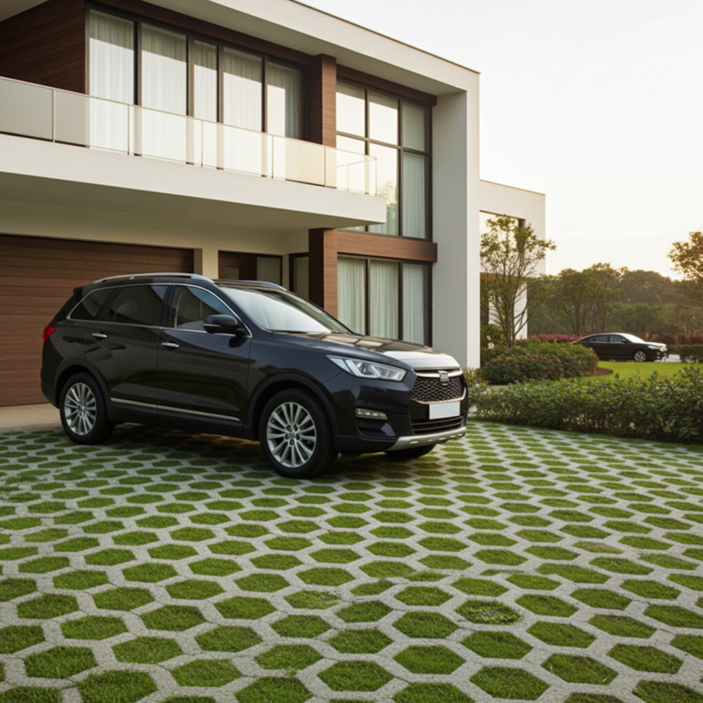 Piedra laja circular para caminos sobre el césped.